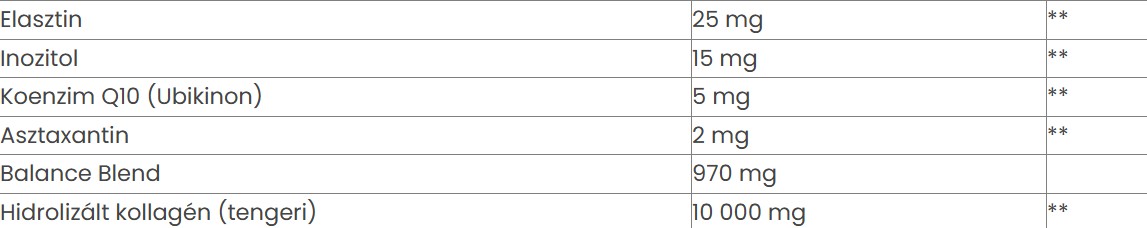 - Ragyogó bőr és haj – tengeri kollagén, biotin, hialuronsav, elasztin és C-vitamin