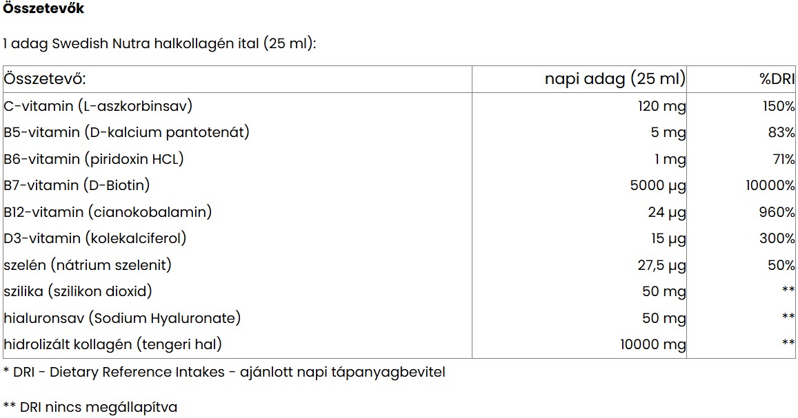 1 adag Swedish Nutra halkollagén ital (25 ml):
